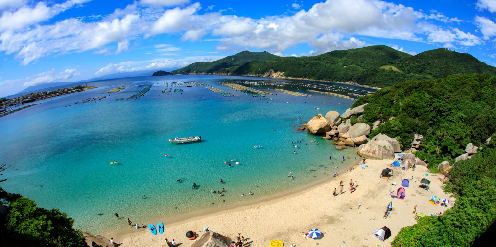 橋で結ばれているため、飛行機を使わずに行けるエメラルドグリーンの海として、四国内や関西方面から車で多くの方がいらっしゃいます。